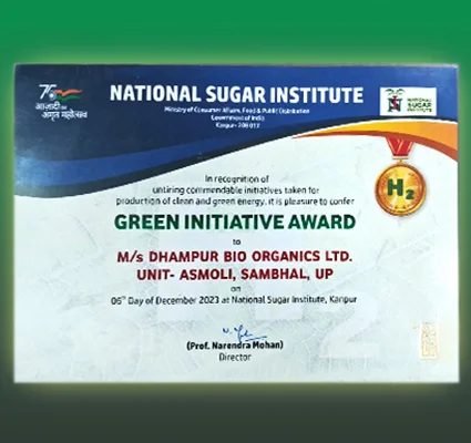 Dhampur Bio Organics Ltd. was conferred GREEN INITIATIVE AWARD 2023 in recognition of untiring commendable initiatives taken by DBO for production of clean and green energy.