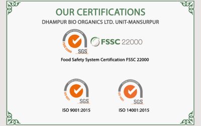 FSSC 22000, ISO 9001:2015 and ISO 14001:2015 Certifications granted to DBO Unit-Mansurpur